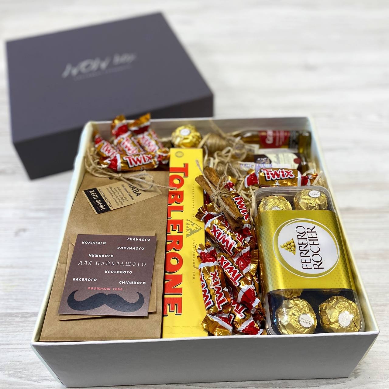 Ароматна кава (можна з крапелькою елітного віскі :), смачний німецький і швейцарський шоколад - подарунковий набір, який сподобається всім!