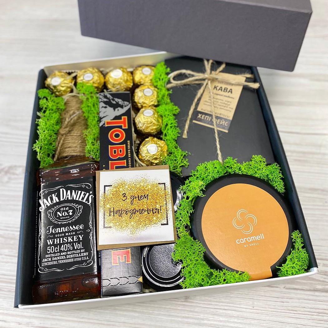подарунковий набір чоловіку з віскі і шоколадом Подарунковий набір чоловіку з крафтовим шоколадом №24460