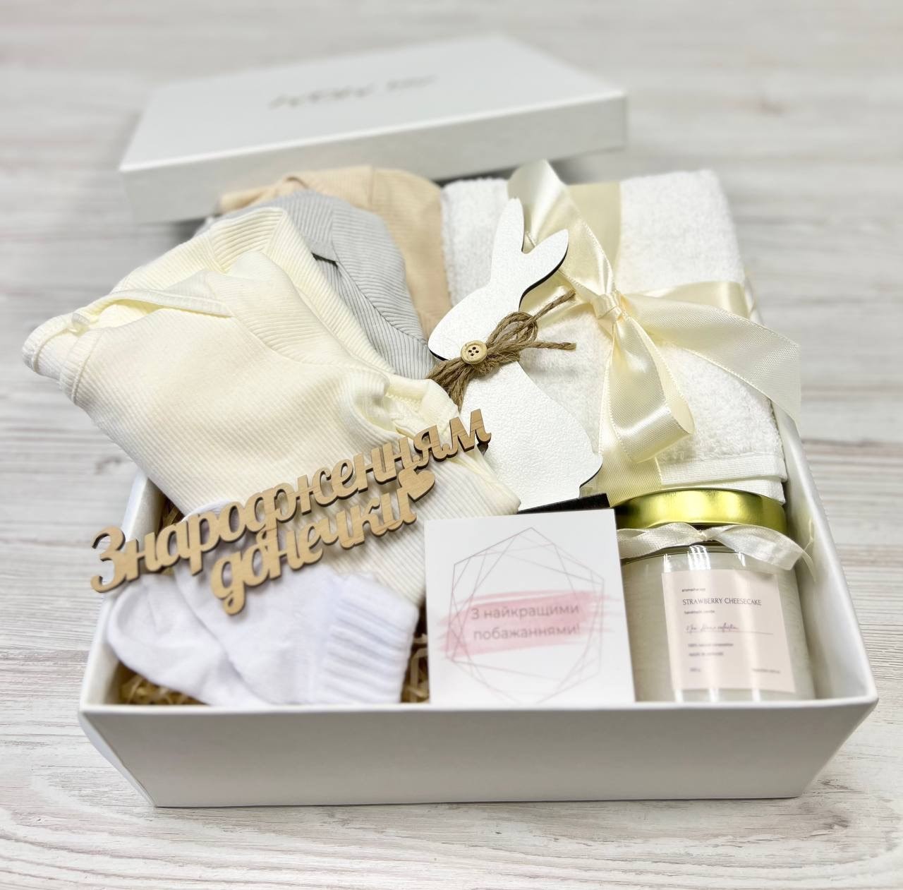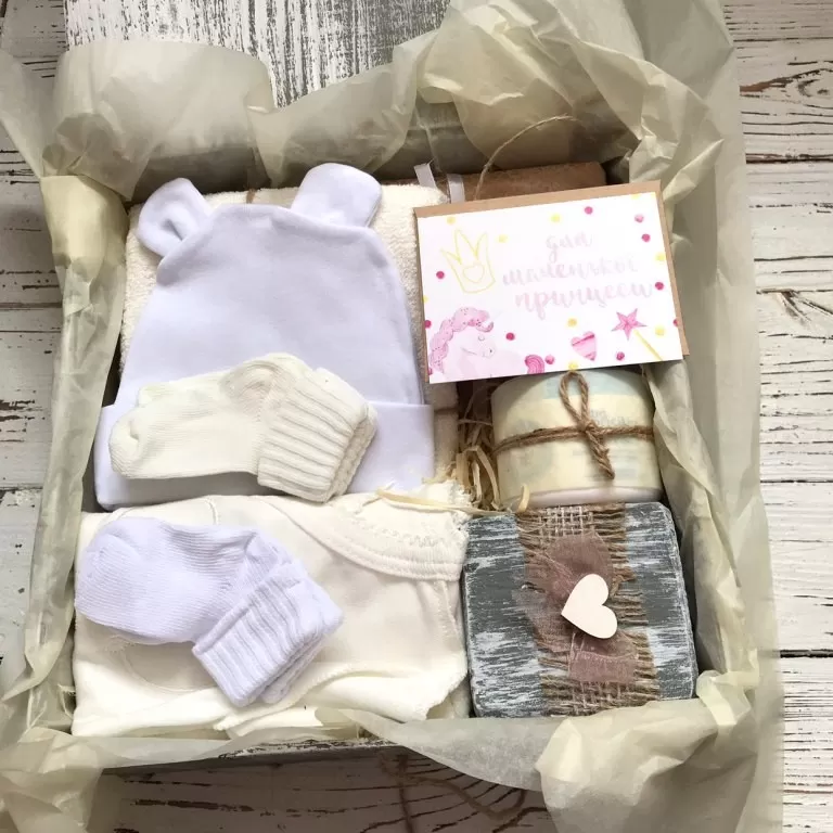 Коли народжується маленьке щастя, хочеться оточити його усім найкращим і натуральним. Створюючи цей набір ми вклали максимум любові, яку ви зможете передати за допомогою подарунку. Батьки точно оцінять вашу турботу і оригінальність. Біле ніжне оформлення символізує чистоту та недоторканність нового житя. також додамо вітальну листівку, щоб надати вашому подарунку ще більшої особистості. Текст може бути ваш. До набору входять: бавовняний рушник, дитячі носочки, шапочка, бодік, дитячий натуральний крем, декоративнй підсвічник. Чклад може бути змінений за індивідуальними побажаннями.