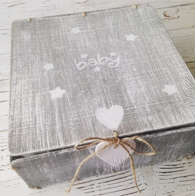 Подаунок на народження (або для зустрічі в пологовому будинку) - гарний спосіб сказати "Вітаю у новому світі"! Дерев'яна подарункова коробка 25х25х10 см.