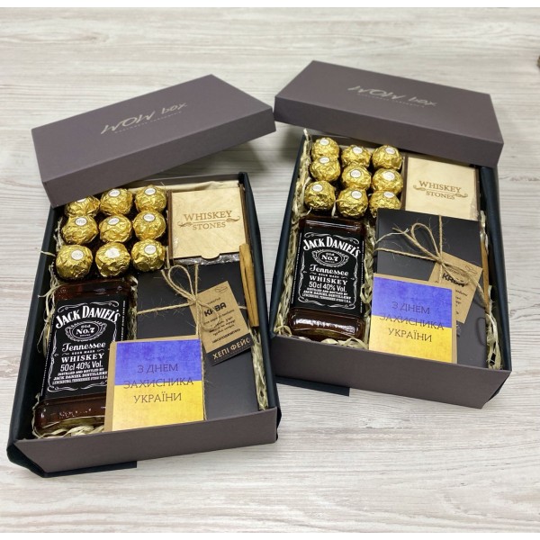 Набір до дня Козацтва з віскі, камінцями для віскі, кавою та цукерками.