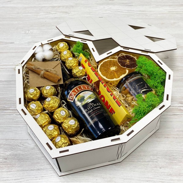 Солодкий подарунковий набір з лікером та смаколиками.