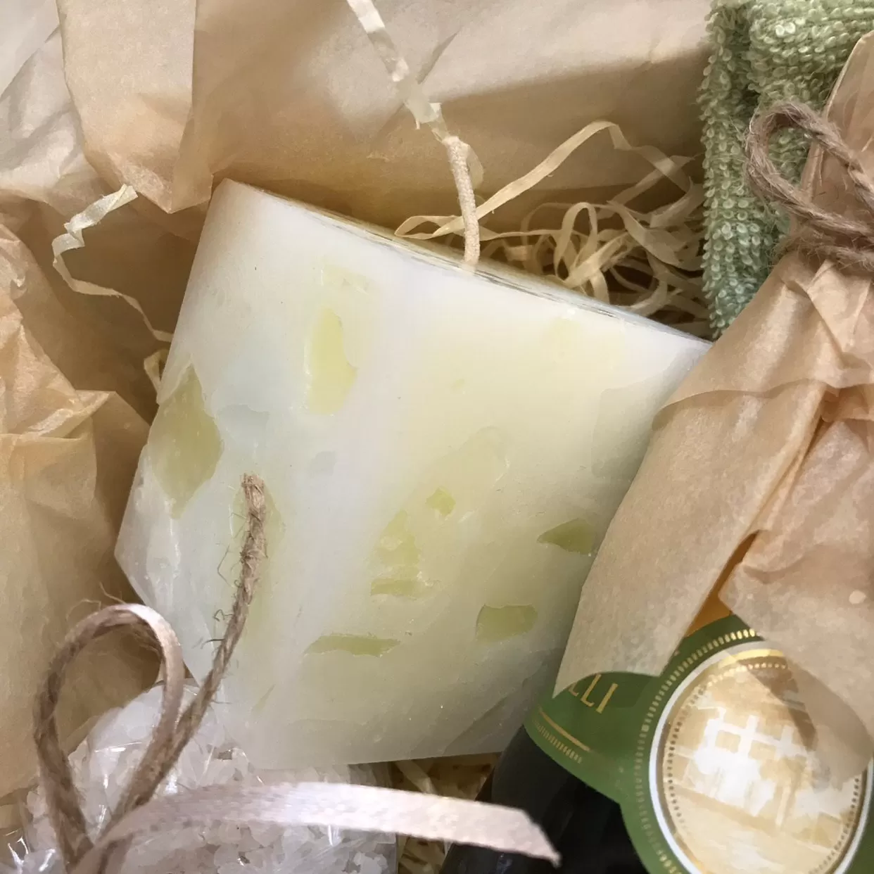 За бажанням, набір може бути укомплектовний скрабом, бомбочкою для ванни, аромамаслом тощо. Колір оформлення також може бути змінений за вашим побажанням. Набір оформлений в подарунковій коробці 20х25 см, 8 см в висоту. Прикрашаємо стрічкою та бірочкою з вашим текстом.