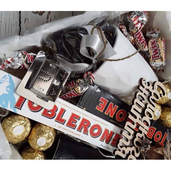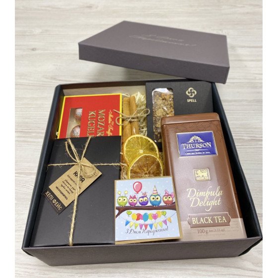 Набір доповнений смачним шоколадом та цукерками.